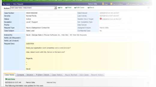 The Flowan Help Desk software provides many interfaces that you can leverage to capture your customer requests. Depending on your needs and the type of customers you are supporting you can allow your customers to directly enter requests using the standard Flowan system or enter requests using the case entry web form or have cases created from one or many mailboxes being monitored by the Flowan Help Desk software.