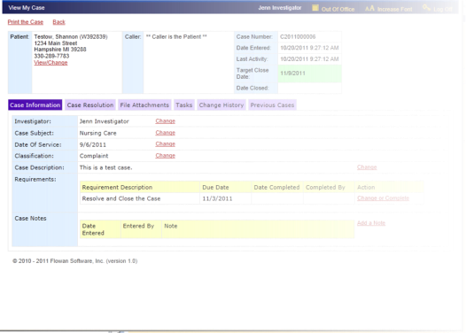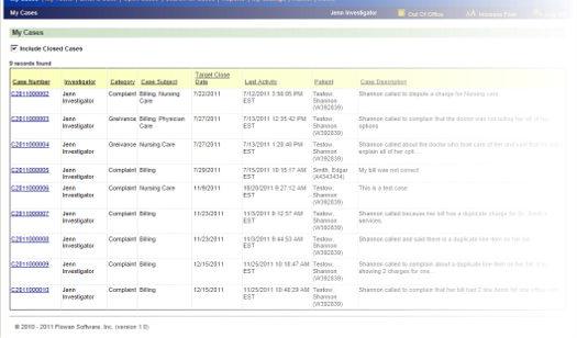 With the Flowan Patient Relations software investigators can easily keep track of the patient cases they are working to resolve. The screens are very intuitive and act as the case “to-do” list for the case investigator.