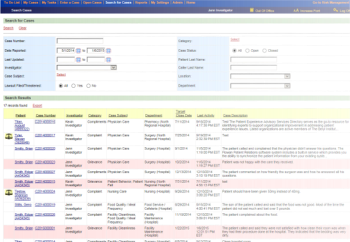 Software Products > Flowan Patient Relations > Case and Incident searching